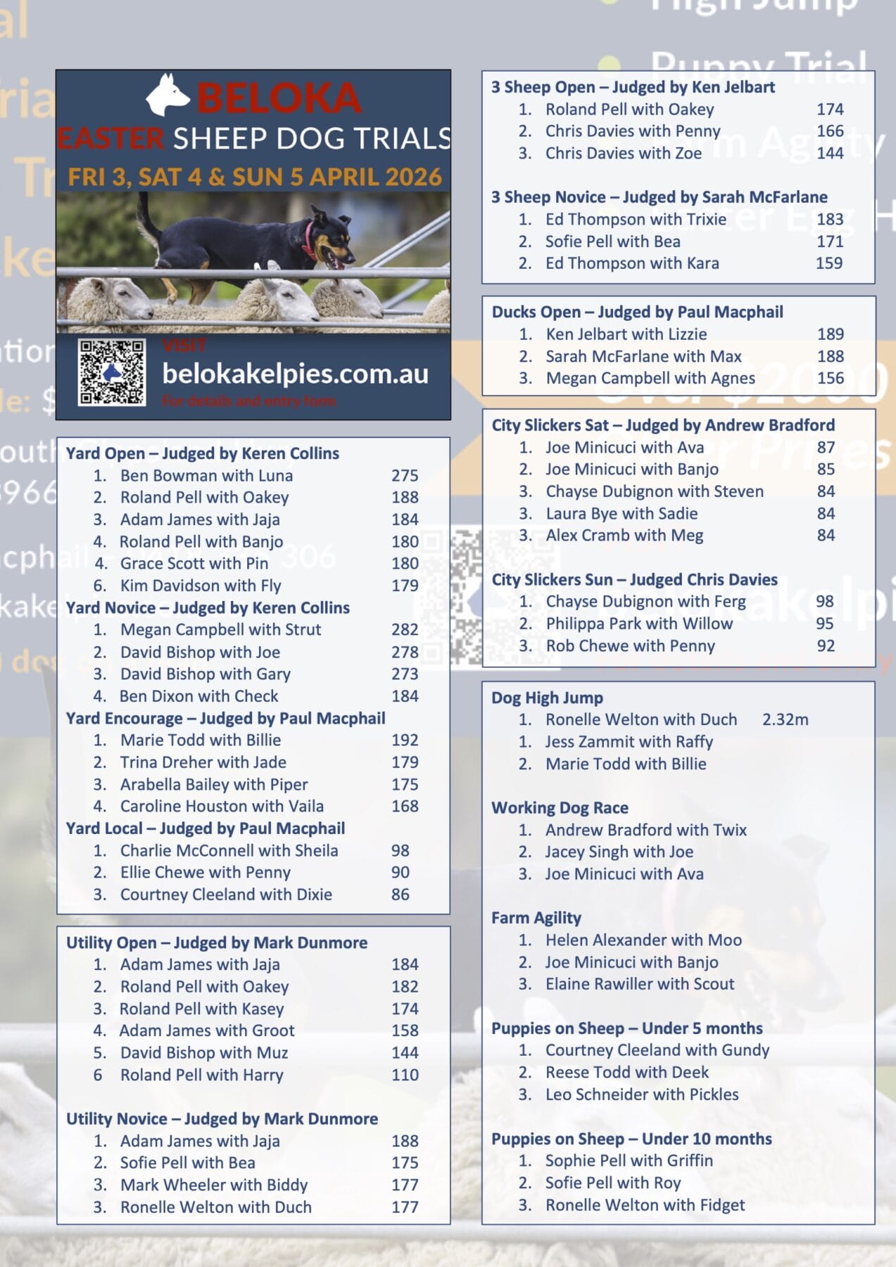 BELOKA EASTER SHEEP DOG TRIALS RESULTS